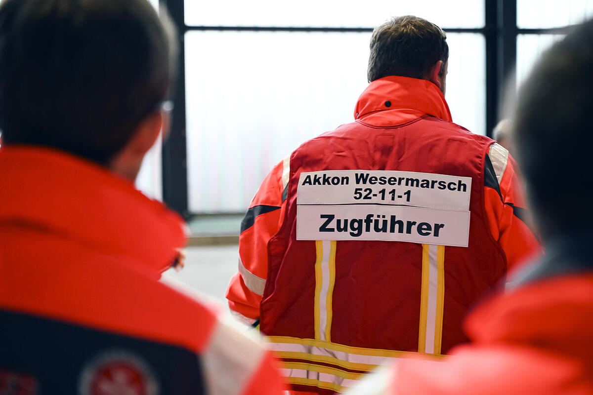 Das Einsatzkontingent JUH-2 Weser-Ems besteht aus den Sanitätsgruppen Garrel, Emden, Oldenburg und Osnabrück, die für Aufbau und Betrieb der Behandlungszelte für verletzte und schwer verletzte Patientinnen und Patienten zuständig sind, den Betreuungsgruppen Aurich und Ems-Vechte (Lingen und Nordhorn), die die Behandlungszelte für leicht verletzte Personen aufbauen und betreiben sollen. Die Logistikgruppe Delmenhorst kümmert sich um die Eingangs- und Ausgangssichtung, stellt die Stromversorgung sicher und organisiert den Patiententransport innerhalb des Behandlungsplatzes. Die Staffel der psychosozialen Notfallversorgung (PSNV) des Ortsverbandes Oldenburg ist für die psychologische Unterstützung von Patienten, aber auch Einsatzkräften zuständig. Um die Verpflegung der Einsatzkräfte kümmern sich die Verpflegungsgruppen Jeverland und Wiesmoor. Bei der Aufbauübung übernahm der Zugtrupp Osnabrück die Aufnahme der Patienten mit Sichtung, Dokumentation und Steuerung, der Zugtrupp Nordenham koordinierte die Übergabe der Patienten an Rettungswagen und Krankenhäuser. Geführt wurden alle Einheiten von der Führungsgruppe aus Stab (SAE), dem Führungskraftwagen vom Ortsverband Delmenhorst (Fükw) und dem Kommandowagen vom Ortsverband Wittmund (KdoW). Alle Einsatzkräfte engagieren sich ausschließlich ehrenamtlich und sind nicht in anderen Einheiten gebunden. „Neben dem Landeskontingent stellen wir in den Ortsverbänden noch weitere Einheiten, die im kommunalen Katastrophenschutz eingebunden sind“, erklärte Marcel Colter. Diese Helfenden sind nicht Teil des Landeskontingents, damit im Katastrophenfall es keine Überschneidungen aufgrund von Doppelmeldungen gibt. „Wenn uns das Innenministerium ruft, kann es sicher sein, dass wir auch in der gemeldeten Zahl kommen“, betonte Colter.