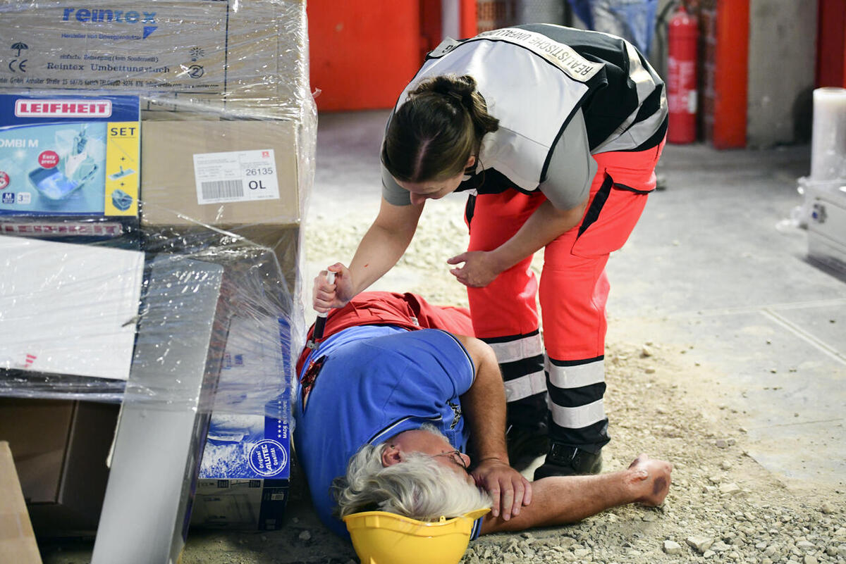 21 ehrenamtliche Teams waren – nach vier Jahren coronabedingter Pause – am Sonnabend beim Landeswettkampf auf dem Gelände der alten Madsack-Druckerei in Hannover-Bemerode angetreten. Vom sechs Jahre alten Pflasterknirps bis hin zum erfahrenen Notfallsanitäter zeigten alle ihr Können in realistisch nachgestellten Fallbeispielen. Die Herz-Lungen-Wiederbelebung war ebenso dabei wie ein Arbeitsunfall in einer Lagerhalle mit offener Unterarmfraktur. Das RUND-Team (Realistische Unfall- und Notfalldarstellung) mit knapp 40 Mimen der Johanniter-Akademie Niedersachsen/Bremen, darunter auch viele vom Ortsverband Oldenburg mit Dr. Claudia Schmithals und Michael Zischke, übernahm bei diesen neun Praxisszenarien eine wirklichkeitsgetreue Darstellung von Notfallsituationen.