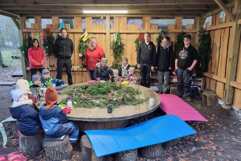 „Was lange währt, wird endlich gut“, sagt Gerda Freese und hebt den Becher mit heißem Kakao zum Gruß. Fast eineinhalb Jahre hat es gedauert, aber kurz vor dem Jahresende 2021 konnte endlich der Unterstand im Johanniter-Waldkindergarten Wittmund fertiggestellt und von den Kleinen in Besitz genommen werden. Mit einer großzügigen Spende des Rotary Club Wittmund-Esens im Jahr 2020 konnte der Bau eines Unterstandes für den damals neu eingerichteten Johanniter-Waldkindergarten am Naturschutzhof in Wittmund begonnen werden. In Kooperation mit den Berufsbildenden Schulen Wittmund, unter der fachmännischen Leitung des Lehrers Christian Janssen, sollten die kleinen und großen Menschen des Kindergartens ein trockenes Plätzchen zum Malen, Basteln und Lesen bekommen.