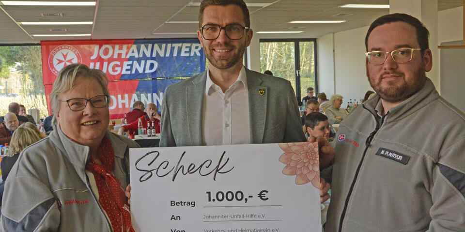 Das fand auch Diana Borchelt, Ortsbeauftragte der Wiesmoorer Johanniter. „Den Gästen hat’s geschmeckt“, sagte sie. Ganz besonders freute sie sich, dass auch Wiesmoors Bürgermeister Sven Lübbers als Gast dabei war. Der kam nicht mehr leeren Händen, sondern mit einem Scheck im Namen des Verkehrs- und Heimatvereins über 1000 Euro. Das Geld ist für die Anschaffung eines Beatmungsgeräts für den Einsatz bei Sanitätsdiensten und Großschadenslagen. Das aktuelle Gerät der Wiesmoorer Sanitäter ist in die Jahre  gekommen, Wartung und Reparaturen sind nicht mehr tragbar, die Verlässlichkeit im Einsatz gefährdet. Ein neues Gerät kostet 6500 Euro. „Die Hälfte haben wir jetzt schon zusammen“, freute sich Diana Borchelt. Die anderen Gäste kamen von anderen Johanniter-Ortsverbänden, darunter aus Ahlhorn, Stedingen, Oldenburg, Wittmund, Varel und Garrel, von der Regionaljugendleitung sowie von der Freiwilligen Feuerwehr Wiesmoor und den Lightning Boots, der Line-Dance-Tanzgruppe, mit denen sich die Johanniter die Dienststelle in der Stadtmitte teilen.