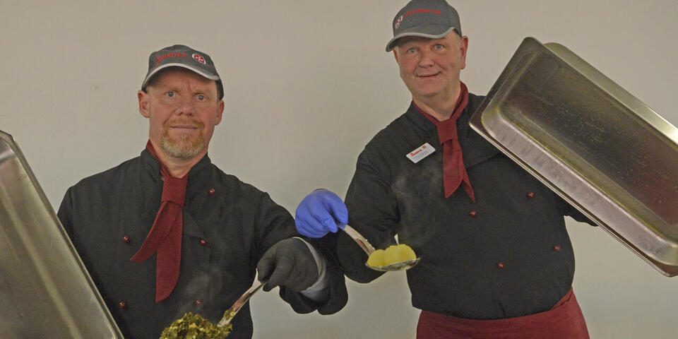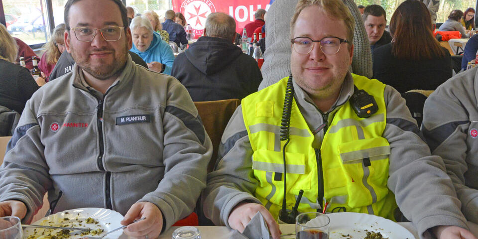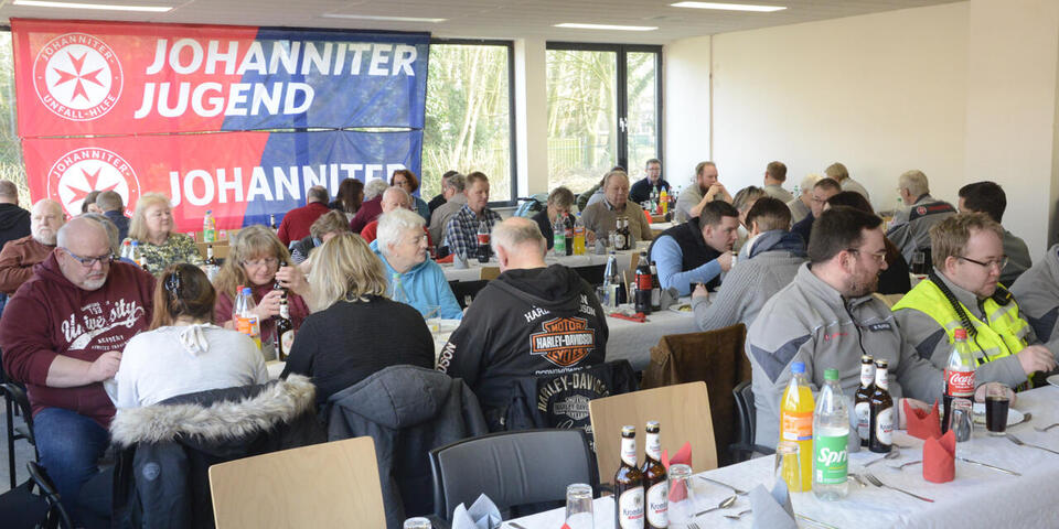 Die Bombenentschärfung am Freitag in Osnabrück hat gezeigt: es kann schnell passieren, dass innerhalb kürzester Zeit eine große Zahl unverletzter Personen untergebracht, betreut und mit Verpflegung versorgt werden muss. Die Ortsverbände Wiesmoor und Jeverland mit ihren Verpflegungsgruppen und der Ortsverband Aurich der Johanniter-Unfall-Hilfe mit seiner Betreuungsgruppe haben genau das am Sonntag geübt. Und damit es sich lohnt, haben die drei Verbände die offiziell durch das Niedersächsische Landesamt für Brand- und Katastrophenschutz (NLBK) anerkannte Übung mit dem traditionellen Grünkohlessen der Wiesmoorer Johanniter verbunden. „Aufgabe war die Aufnahme, Unterbringung und Verpflegung von bis zu 80 Personen“, erklärte Marcel Planteur, Fachbereichsleiter Einsatzdienste im Ortsverband Wiesmoor. Gemeinsam mit Einsatzleiter Sebastian Rauch vom Ortsverband Wittmund hatte Planteur die Übung geplant. Der Ortsverband Aurich baute eine Sanitätsstation auf und richtete den Betreuungsraum ein. Die Verpflegungsgruppen kümmerten sich um das Kochen und die Versorgung mit Getränken. „Es sind noch einige Dinge mit Verbesserungspotenzial aufgefallen und wir haben einige Lernfelder erkannt“, sagte Sonja Kersten vom Ortsverband Varel, Verbandführerin sowie Übungsbeobachterin und Fachberaterin im Auftrag des Stabes außergewöhnlicher Ereignisse (SAE) der Johanniter-Regionalbereitschaft Weser-Ems. „Aber dafür sind Übungen da, solche Defizite zu erkennen.“ Dabei sei zu berücksichtigen, dass bewusst einige neue Helfende erstmals einen solchen Einsatz begleitet haben. „Nicht jeder kennt das Material in dem Umfang, wie es für einen solchen Einsatz notwendig ist“, sagte Sonja Kersten. Insgesamt sei die Übung aber gut verlaufen.