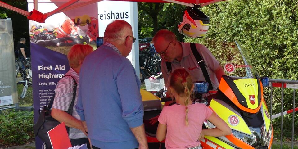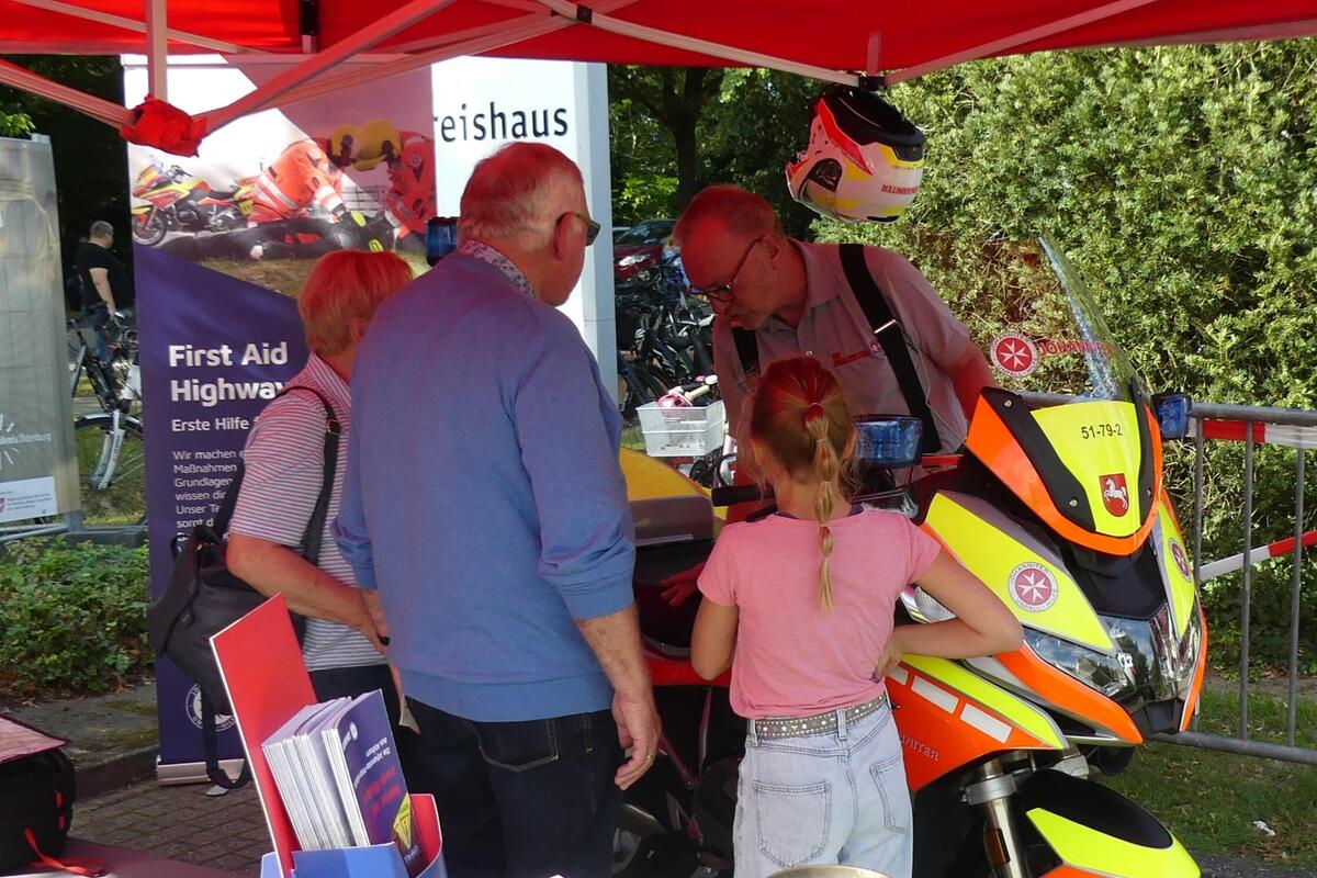 Der Stand der Staffel wurde vor allem von Menschen mit Migrationshintergrund rege besucht. In vielen Gesprächen – teils auf Deutsch, teils auf Englisch – informierten die ehrenamtlichen Helferinnen und Helfer über ihre Aufgaben im Katastrophenschutz, über den Dienst als "First Responder" auf den regionalen Autobahnabschnitten 1, 28 und 29 und ihre Rolle im konkreten Einsatzgeschehen. Besonders beliebt war das ausgestellte Einsatzmotorrad „AKKON 2“, auf dem Jung und Alt Platz nehmen durften – ein Erinnerungsfoto inklusive.