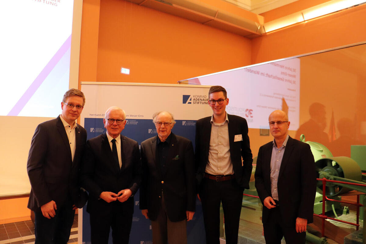 Rund 140 Gäste waren zum Festakt ins Forum "Alte Fleiwa" in Oldenburg gekommen, unter ihnen die Oldenburger Bürgermeisterin Petra Averbeck, der Ammerländer Landtagsabgeordnete Jens Nacke, der Landrat des Kreises Wesermarsch, Stephan Siefken, sowie der ehemalige Verteidigungsstaatsekretär Thomas Kossendey. In seinem Impulsvortrag blickte Pöttering auf die politische Entwicklung der letzten 30 Jahre zurück, mit Schwerpunkt auf die europäische Einigung. In Freiheit zu leben, so das jahrzehntelange Mitglied des Europäischen Parlamentes, sei eine der Hauptantriebsfedern der Menschen. Dagegen komme auf Dauer kein autoritäres Regime an.