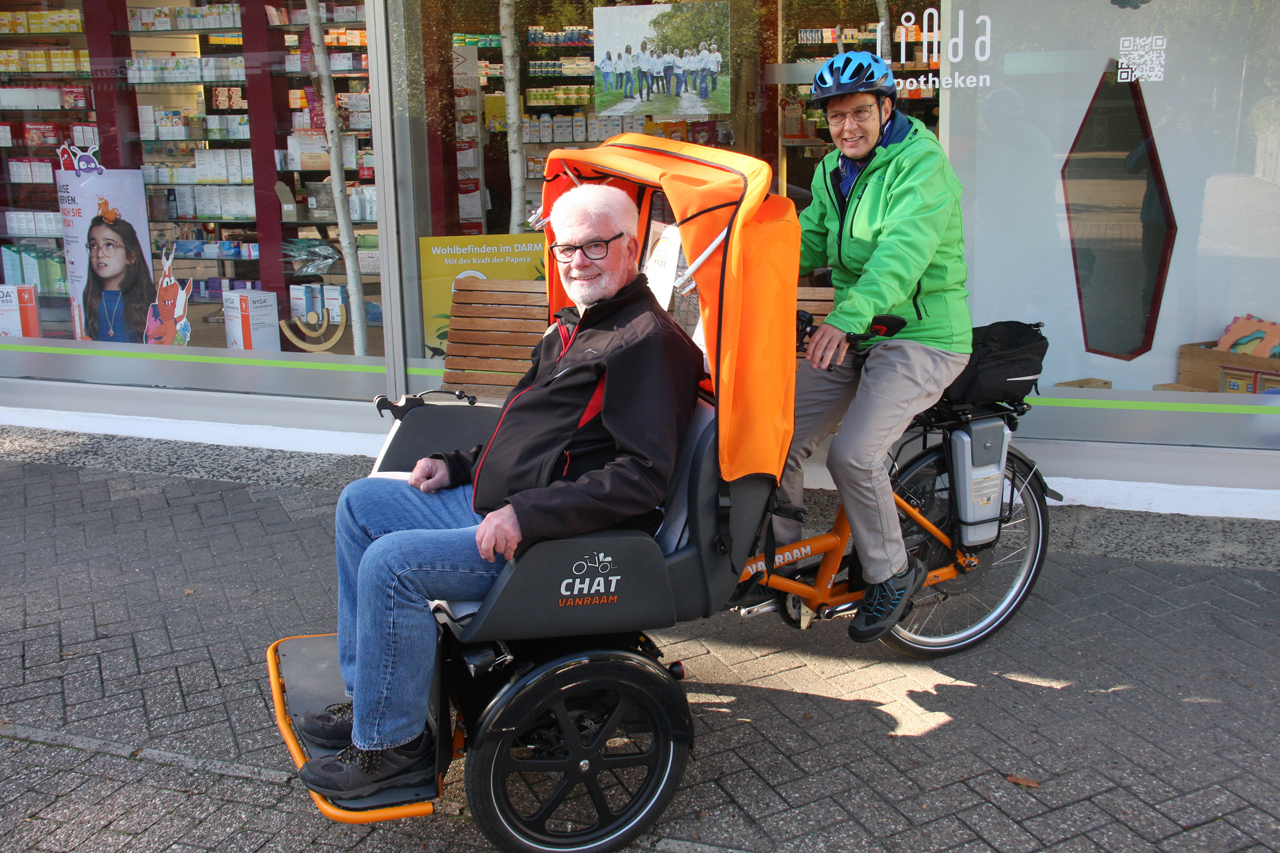 Die von mehreren Spenderinnen und Spendern finanzierte Rikscha des Stützpunktes Hude der Johanniter-Unfall-Hilfe wurde während des Bürgerfestes Anfang September von der Bürgerstiftung an die Johanniter übergeben. Am vergangenen Freitag wurde das gute Wetter genutzt, um während einer Rundtour durch Hude auf das Angebot aufmerksam zu machen. Viele Passanten nutzten die Gelegenheit, die Rikscha anzusehen und Fragen zu stellen. „Radeln für Alle“ der Johannniter bietet kostenlose Fahrten mit einer elektrisch unterstützten Fahrrad-Rikscha an, die neben der Fahrerin, dem Fahrer zwei weiteren Personen Platz bietet. Die Rikscha-Freunde Hude fördern damit ehrenamtlich die Möglichkeit für Menschen, die nicht mehr selbst in die Pedale treten können, Ausflüge in die nahe Umgebung oder kleine Touren zu unternehmen. Unterstützung erhält Ulrike Rakow durch weitere Mitglieder der Rikscha-Freunde Hude: Folkert Hoffmann, Rolf Schütte, Frank Munderloh und Siegfried Rakow.Das Angebot „Radeln für Alle“ ist ausschließlich spendenfinanziert. Die Spenden werden verwendet für Anschaffung, Wartung und Reparatur der Rikschas sowie für die Ausbildung und Ausstattung der Fahrerinnen und Fahrer.