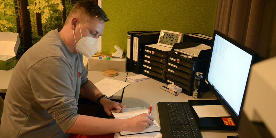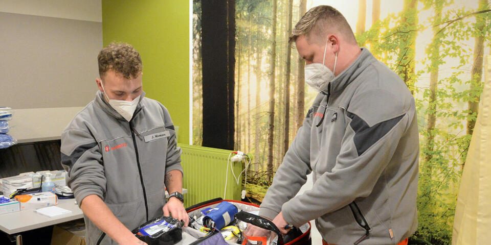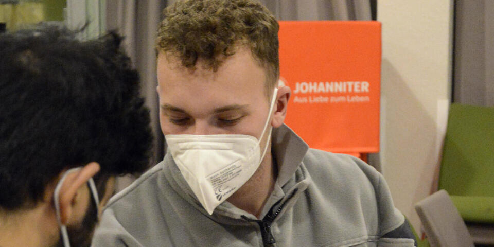 Der Weg war weit und dauerte lang. Fast zwei Jahre brauchte Jibril von Afghanistan bis nach Deutschland. Jetzt steht der Endzwanziger in der Sanitätsstation der Johanniter in der Jugendherberge Thülsfelder Talsperre und kratzt sich den Unterarm. „Das sollte sich ein Arzt anschauen“, sagt Jonas Niemann, Sanitäter im Ortsverband Cloppenburg der Johanniter-Unfall-Hilfe, und betrachtet nachdenklich den Ausschlag auf Jibrils Arm. Dann macht er eine Überweisung fertig und gibt dem jungen Mann noch eine rezeptfreie Salbe zur Linderung des Juckreizes. Sein Kollege Dennis Laskowski trägt den Fall ins elektronische Behandlungsbuch ein. Zurzeit befinden sich rund 190 Geflüchtete aus 13 Nationen in der Jugendherberge Thülsfelder Talsperre, die von der Landesaufnahmebehörde Niedersachsen (LAB) bis Ende März als Ausweichquartier angemietet worden ist. Für alle Seiten eine gute Vereinbarung. Die LAB kann die große Zahl Geflüchteter, die zurzeit in Deutschland ankommen, besser unterbringen, das Deutsche Jugendherbergswerk (DJH) ihre im Winter nicht ausgelasteten Einrichtungen vermieten. Und die Geflüchteten haben mehr Platz und ein festes Dach über den Kopf. In der Region hat die LAB die Jugendherbergen Thülsfelder Talsperre, Bad Zwischenahn, Emden und Aurich angemietet. In allen vier Einrichtungen kümmern sich die Johanniter um die medizinische Erstversorgung der Bewohnenden und führen Corona-Testungen vor den Transfers in die aufnehmenden Kommunen durch.