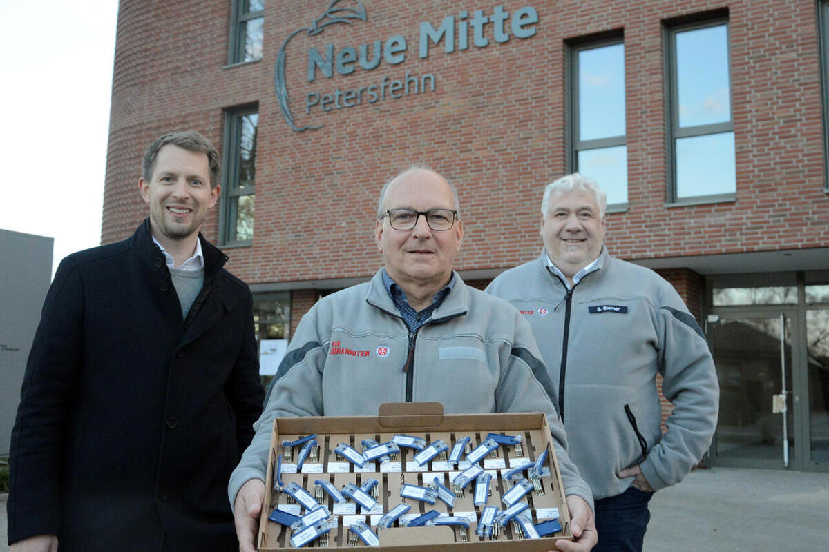 Am Anfang haben sie von ihren Sitzungen immer noch Protokolle geschrieben. Darin stand, wer was wann zu erledigen hat. „Irgendwann haben wir damit aufgehört“, erzählt Fabian Gross, Bauleiter bei Aschenbeck & Aschenbeck Projektentwicklung GmbH aus Oldenburg und verantwortlich für den Bau der „Neuen Mitte Petersfehn“. „Wir konnten uns partnerschaftlich darauf verlassen, dass alles erledigt wird.“ Ein Lob, das Frank Komrowski, Leiter Wohnkonzepte im Regionalverband Weser-Ems der Johanniter-Unfall-Hilfe, zurückgeben kann: „Wenn irgendwas war, reichte ein Anruf.“ Jetzt hat Aschenbeck & Aschenbeck Projektentwicklung die „Neue Mitte Petersfehn“ an die Johanniter übergeben – einen Monat früher als geplant. „Wir sind schon ein wenig wehmütig, dass die Zusammenarbeit hier zuende ist“, sagte Berend Aschenbeck. „Aber ich hoffe, dass wir noch weitere Projekte gemeinsam verwirklichen können.“ Ein Zuspiel, dass Wilfried Barysch, Mitglied im Vorstand des Johanniter-Regionalverbands Weser-Ems, gerne aufnahm. „Wenn ihr was machen wollt, wir sind sofort dabei.“ Das Projekt zu verwirklichen habe großen Spaß gemacht. Zur Übergabe hatte Berend Aschenbeck noch einige Geschenke mitgebracht. Da auf dem Grundstück für den Bau zwei Apfelbäume gefällt werden mussten, wurden zwei neue derselben Sorte angepflanzt. Für den Garten der Tagespflege gab es eine Rundbank, auf der die Gäste unter dem Baum sitzen und ihre Zeit genießen können. Zudem gab es ein Vogelhäuschen, damit nicht nur Senioren, sondern auch kleine Piepmätze in der „Neuen Mitte Petersfehn“ einziehen können. Natürlich mit Serviceleistungen wie Vogelfutter als Mittagsverpflegung.