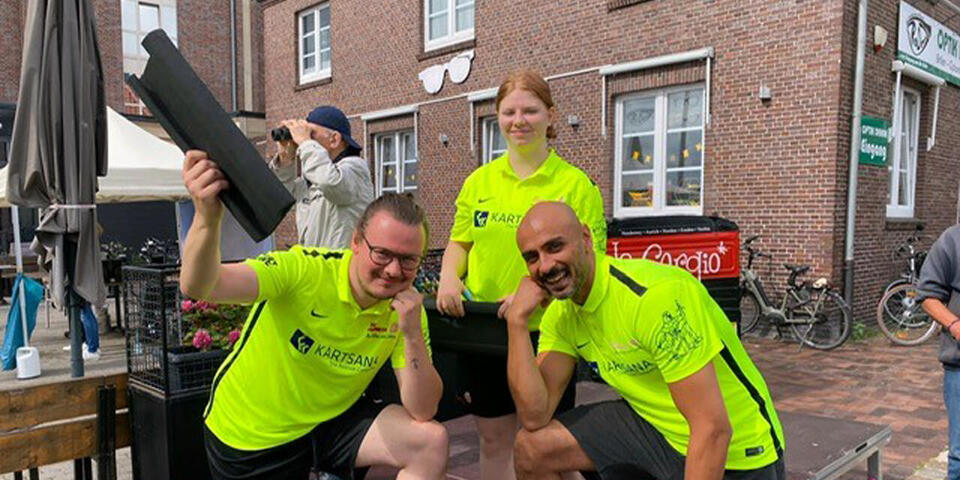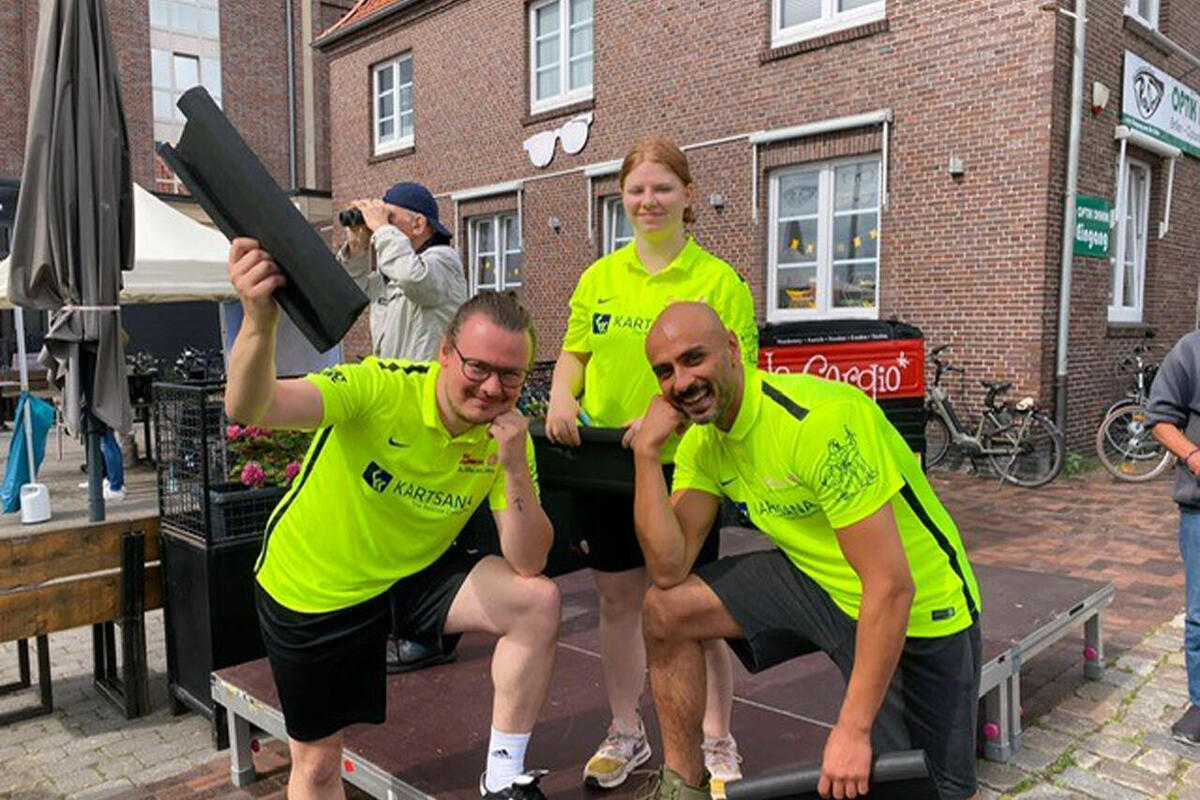 Die „Sons of Paddel“, bestehend aus ehrenamtlichen und hauptamtlichen Johannitern aus den Einsatzdiensten des Ortsverbands Oldenburg, haben beim Drachenboot-Rennen des Emder Rudervereins den 5. Platz in der Fun-Klasse belegt. Dabei wäre durchaus mehr drin gewesen. Das Boot der Oldenburger Johanniter, in dem auch Daughters sitzen, war über die Emder Hafenmeile in den ersten Läufen immer stark gestartet und hatte das Tempo dann auch auf der rund 250 Meter langen Strecke gehalten. Doch ausgerechnet im entscheidenden Rennen verpatzten die „Sons of Paddel“ den Start. Ein Paddler auf einer der vorderen Bänke geriet aus dem Takt, der Fehlrhythmus setzte sich bis auf die hinterste Bank vor. „Das war fatal“, sagt Niels-Holger Brunkau, der das Team angemeldet hatte. „Wir haben rund vier Sekunden gebraucht, um den Takt wiederzufinden.“ Zu viel Zeit, um auf der kurzen Strecke vorne wieder ranfahren zu können. Doch am Ende war es auch egal. Der Spaß stand für alle im Vordergrund, und den hatte das Oldenburger Team reichlich.