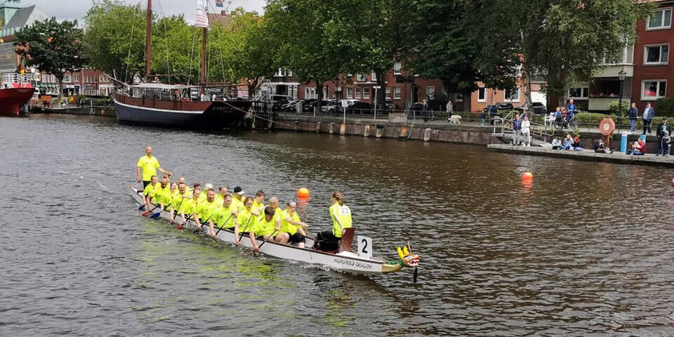 „Sons of Paddel“ starten beim Emder Drachenboot-Rennen
