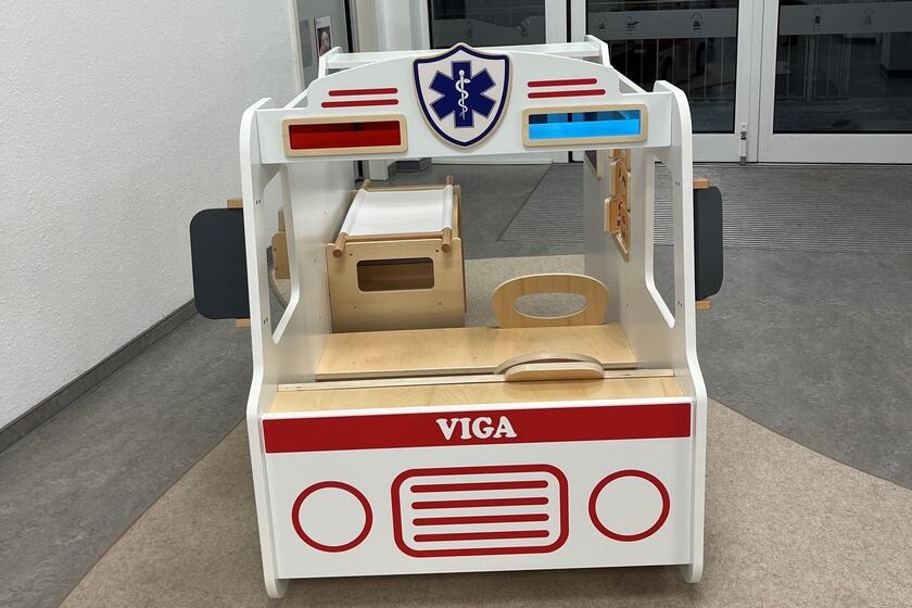 Früh übt sich: Die Kinder in der Johanniter-Kita Else Melle können spielerisch in den Rettungsdienst schnuppern. Die Kindertagesstätte hat ein ganz besonderes neues Spielgerät angeschafft: Einen Krankenwagen. Dieser ist zwar kleiner als das Original und aus Holz, aber ähnlich gut ausgestattet. Es gibt ein AED- und ein Röntgengerät, auf Schautafeln werden den Kindern gängige Krankheitsbilder und das richtige Vorgehen bei Verletzungen oder Reanimationspflicht nähergebracht. Damit die Rettenden von morgen sich auch körperlich betätigen können, gehört zum Krankenwagen auch eine kleine Trage. Der Krankenwagen ist bespielbar und kann ab sofort für Einsätze mit Puppen, Teddys und anderem Spielzeug verwendet werden.