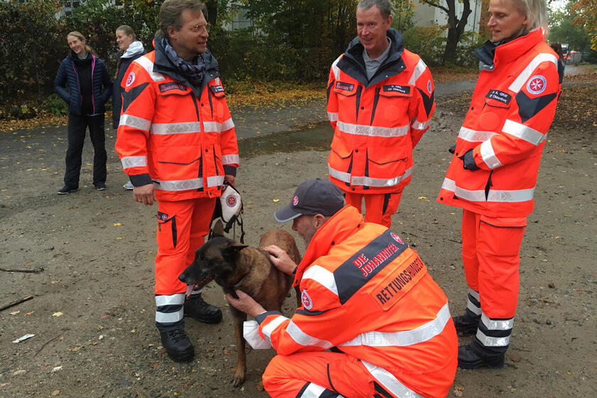Ein neues und ein bewährtes Team der Johanniter-Unfall-Hilfe im Regionalverband Weser-Ems haben jetzt ihre Prüfung als Rettungshundeteam bestanden und dürfen fortan in den Einsatz gehen. Als Mitglied der Rettungshundestaffel des Ortsverbands Osnabrück hat Magnus Erpenbeck mit Philly erstmals die Prüfung bestanden, die nach der bundesweit gültigen Prüfungsverordnung abgelegt werden muss. Curt Lehmann hat mit seiner Belgischen Schäferhund Hera bereits zum wiederholten Mal die Prüfung erfolgreich abgeschlossen. Er ist Mitglied der Rettungshundestaffel des Johanniter-Ortsverbands Oldenburg. Die Prüfung nach der Gemeinsamen Prüfer- und Prüfungsordnung für Rettungshundeteams (GemPPO) ist jeweils für höchstens 24 Monate gültig und muss in dieser Zeit neu abgelegt werden. Wird die Prüfung nicht bestanden oder der Zeitraum verpasst, wird die Zulassung eingezogen und das jeweilige Team darf nicht mehr in den Einsatz gehen. Insgesamt hatten 17 Rettungshundeteams der Johanniter teilgenommen, 14 haben bestanden. Die Teams kamen unter anderem aus Vogelsberg, Dresden, Hamburg, Schleswig, Paderborn und Nordbrandenburg.