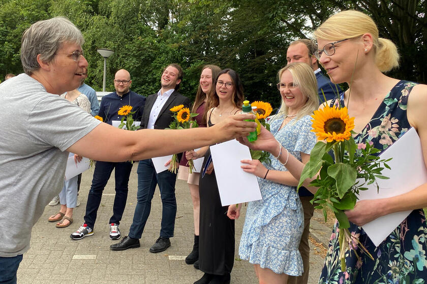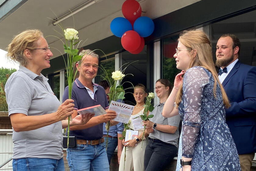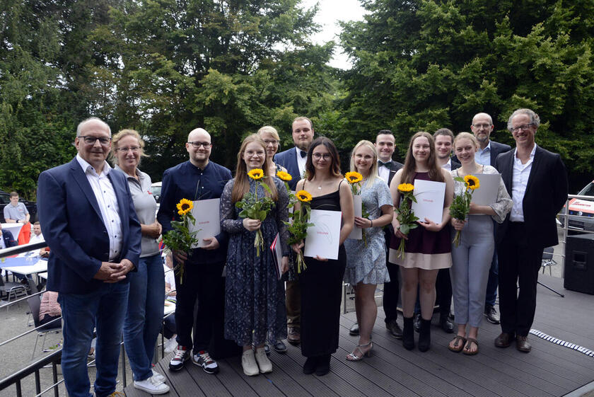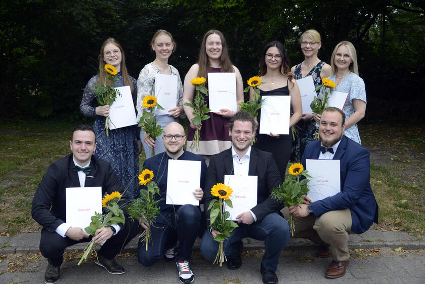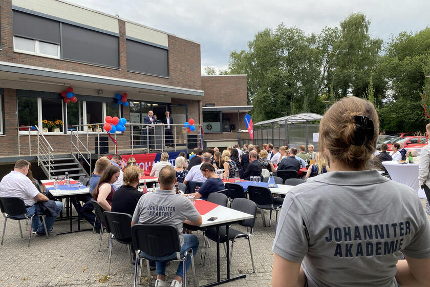 Am Ende wurde alles gut: Zehn junge Frauen und Männer der Johanniter-Unfall-Hilfe und des Malteser Hilfsdienstes von Rettungswachen in der Region Weser-Ems haben ihre Ausbildung als Notfallsanitäter/innen bestanden und erhielten ihre Zeugnisse. Da hatte sogar das Wetter ein Einsehen und schob eine dicke Regenfront haarscharf am Innenhof des Campus Oldenburg der Johanniter-Akademie Niedersachsen/Bremen vorbei. Mehr als drei oder vier Tropfen fielen nicht, aber das störte niemanden. Denn die große Freude über das unter Schwierigkeiten Erreichte überwog, die Party konnte weitergehen. Die zahlreichen Gäste, Angehörige, Freunde, Kolleginnen und Kollegen sowie die Praxisanleiter und einige Rettungswachen- und Dienststellenleiter und -Leiterinnen der Auszubildenden, gratulierten und feierten die neuen Notfallsanitäterinnen und –Sanitäter mit einem vielfältigen Programm.