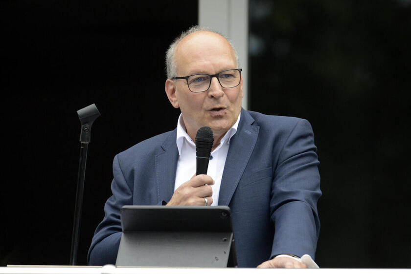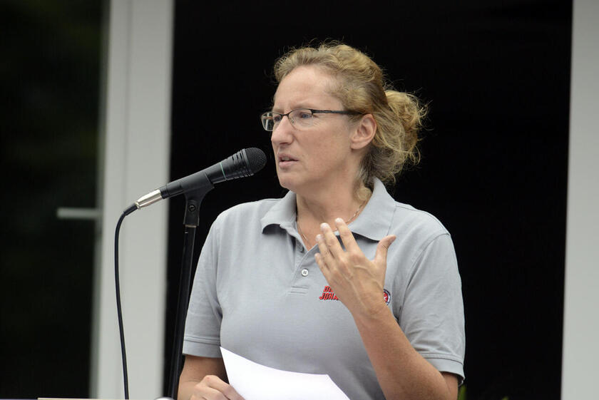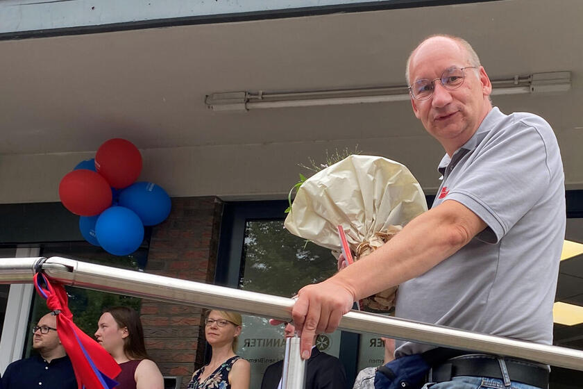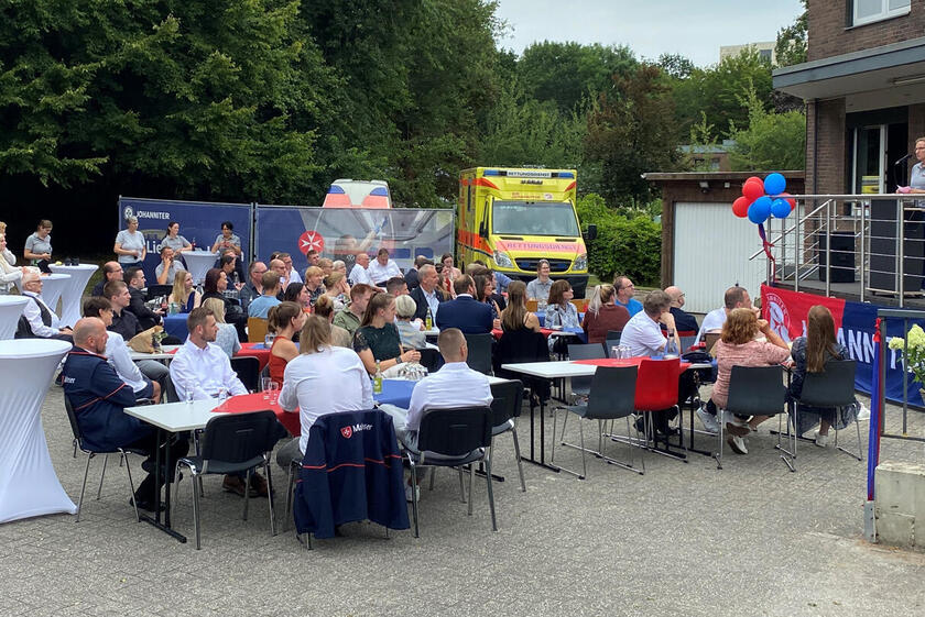 Los ging es mit den offiziellen Reden: Wilfried Barysch, Mitglied im Vorstand des Johanniter-Regionalverbands Weser-Ems, und Klassenlehrer und Schulleiter der Notfallsanitäterschule Weser-Ems, Jan Jensen, gratulierten und betonten die großen Schwierigkeiten, mit denen die Klasse fertig werden musste. „Ganz oben auf der Liste steht sicherlich die Corona-Pandemie“, sagte Barysch. Die jungen Frauen und Männer waren gerade ein halbes Jahr in der Ausbildung, als die Pandemie losbrach. Personalmangel in den Rettungswachen, Verbot von Präsenzunterricht, strikte Hygienevorgaben „Sie stellten sich diesen Herausforderungen und meisterten Sie“, sagte Barysch. Auch Klassenlehrer und Leiter der Notfallsanitäterschule Jan Jensen betonte die Schwierigkeiten, mit denen die Klasse umgehen musste. Unter anderem war ein Prüfer kurzfristig wegen Corona ausgefallen. „Sie haben es trotzdem geschafft“, sagte Jensen und sah darin sehr viel positives: „Diese Herausforderungen sind eigentlich ein Zugewinn dieser Prüfung. Dass Sie retten können, haben Sie beeindruckend gezeigt.“ Im aktiven Dienst können diese Fähigkeiten, auch unter schwierigsten Bedingungen gute Arbeit abzuliefern, den entscheidenden Unterschied für den Patienten machen.