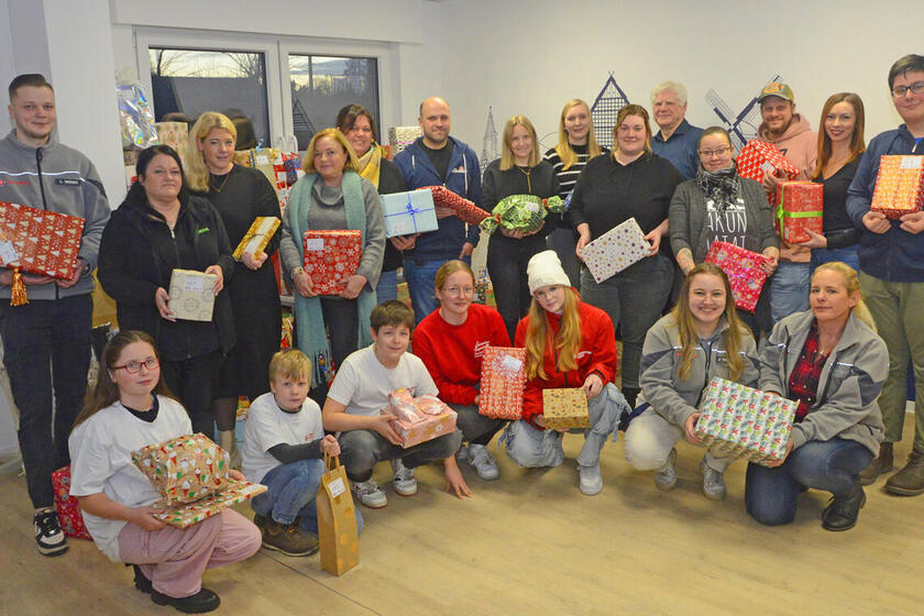 Die Pakete waren nach den Einrichtungen sortiert, Aufkleber sorgten dafür, dass jedes Kind auch tatsächlich das für ihn bestimmte Geschenk bekommt. Aus Datenschutzgründen sind Wunschzettel und Geschenke durch Nummern kodiert. „Diese Anonymität macht, dass die Geschenke fast vom Himmel fallen“, sagt Ortsverbandspfarrer Pastor Wolfgang Kürschner in einer kleinen Andacht. „Niemand erwartet eine Gegenleistung, aber alle können sicher sein: Der Dank ist groß.“ Dem schloss sich Joelina-Charlyn Niemann an und dankte ganz besonders den zahlreichen Wunschpatinnen und Wunschpaten, die die Aktion erst ermöglichen: „Mit ihrer Hilfe können wir anderen Kindern eine Freude bereiten, die nicht so viel Glück im Leben hatten wie wir.“ Beteiligt sind die Stiftung St. Vincenzhaus, das Kinderhaus Sedelsberg der Jugend- und Familienhilfe Franke, die „Lüttje Hütt“ Kinder- und Jugendhilfe in Bösel und in Barßel, die begleitete Elternschaft „Lichtblick“ des Caritasvereins Altenoythe, der Leinerstift mit zwei Einrichtungen, die Heilpädagogische Wohngruppe „Strukelje“ der IFI Kinderheim gGmbH, das Caritas-Sozialwerk St. Elisabeth Niels-Stensen-Hof, die Mädchen-Wohngruppe des Deutschen Kinderschutzbundes, „Haus Emstek e.V.“, die Wohngruppe Cloppenburg Bethel im Norden der v. Bodelschwingschen Stiftung, die Kinder- und Jugendhilfe-Einrichtung „Weitblick“ und der Kinderhof Haus Merzen.