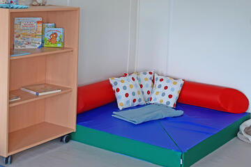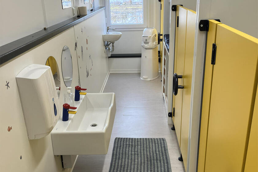 Aktuell befindet sich unsere Kita übergangsweise in modernen Container-Räumen, bis unser zukünftiges festes Kita-Gebäude fertiggestellt wird. Auch in dieser Übergangszeit schaffen wir eine liebevolle Umgebung, in der sich Kinder wohlfühlen und entfalten können.