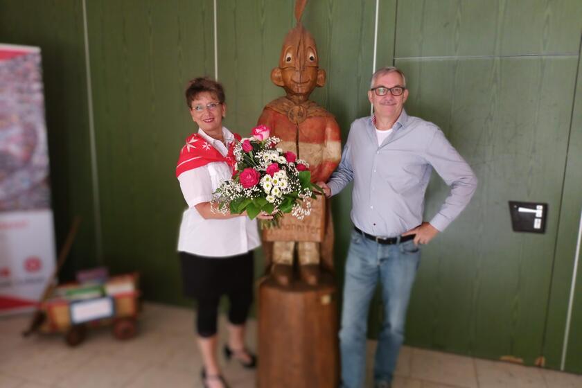 Wegen der Coronapandemie gibt es keine große Feier, aber im kleinen Rahmen haben die Johanniter ihrer Itzehoer Dienststellenleiterin Ulrike Bessel gratuliert. Zum 25-jährigen Dienstjubiläum.
