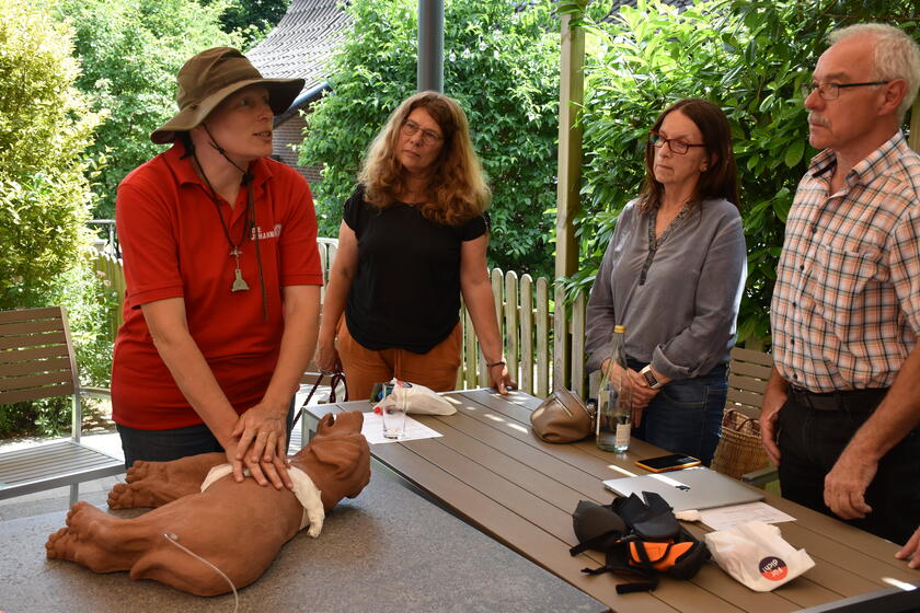 Besonders dankbar waren die Kursteilnehmer beim Praxiskurs, an einer Hundepuppe die Wiederbelebung zu üben. Denn auch Vierbeiner können nach einem Schock zum Beispiel durch einen Autounfall zurück ins Leben geholt werden - durch Herzdruckmassage und eine Mund-Nase-Beatmung.
