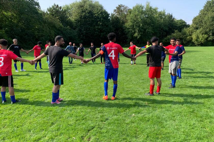 Erstmalig haben Flüchtlingseinrichtungen in Schleswig-Holstein ein gemeinschaftliches Fußballturnier veranstaltetet. Es fand am 17. August auf dem Sportplatz der Hebbelschule in Kiel statt.