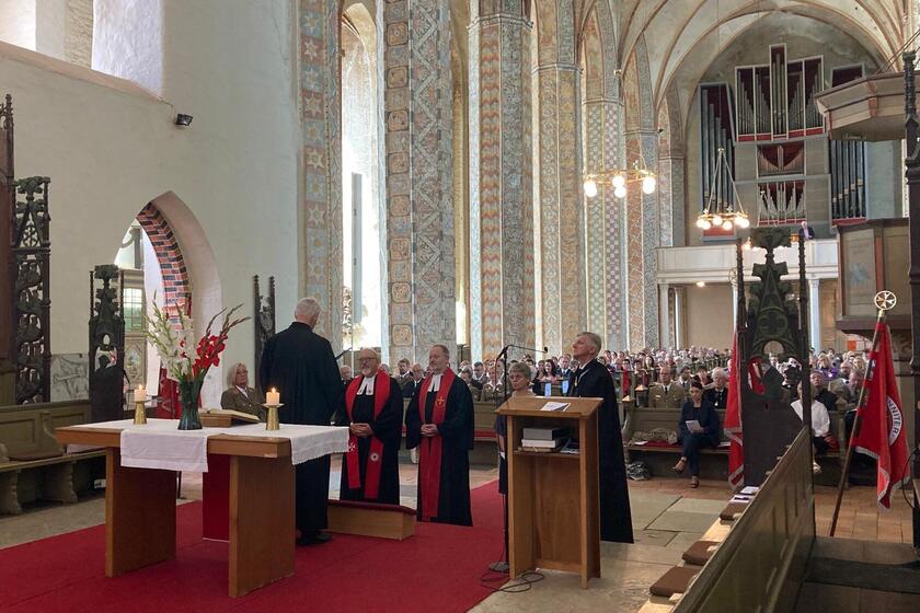 Die Amtseinführung der Landespastoren folgt einem vorgegebenen Ritual. Die Verpflichtungsfragen stellte Johanniter-Bundespfarrer Dr. Matthias Meyer. Die frisch eingeführten Landespastoren übernahmen anschließend die Predigt und einen Teil der Fürbitten. Rund 100 Johanniter und geladene Gäste aus Politik, Gesellschaft und von befreundeten Hilfsorganisationen wohnten der Zeremonie bei. Unter den Gästen waren auch Heiko Miraß, Parlamentarischer Staatssekretär und Beatrix Wittmann-Stifft, Anklams 1. Stellvertretende Bürgermeisterin.