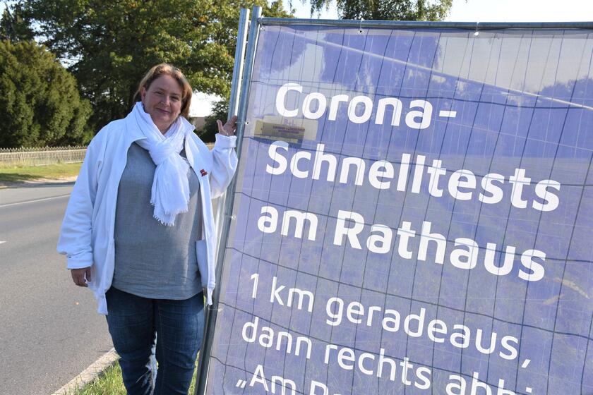 Tina Lassalle, Pflegedienstleitung des ambulanten Pflegediensts der Johanniter, testet im Testzentrum Salzhausen.