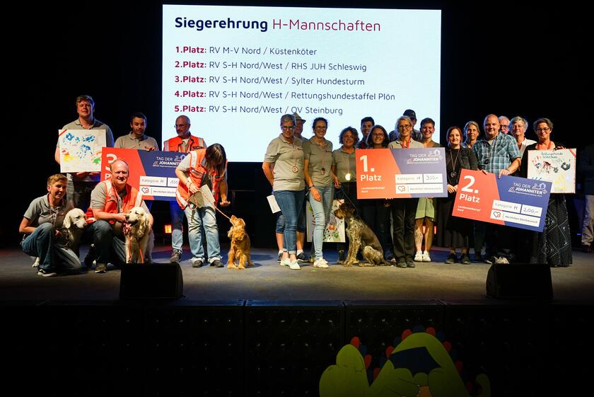 Die vierbeinigen Rettungsprofis der ehrenamtlichen Johanniter-Rettungshundestaffeln durften sich nicht ablenken lassen: Die Hund-Mensch-Teams zeigten im Gewandheitstest über den tiergerechten Hindernisparcours, wie vertrauensvoll sie zusammenarbeiten. Im Ernstfall ist die gute Kommunikation zwischen Mensch und Tier lebensrettend. Die Staffel aus Vorpommern-Rügen entschied den Wettkampf in der Kategorie H der Rettungshundestaffeln für sich. Die Hund-Mensch-Teams aus Schleswig und Sylt folgten auf den Silber- und Bronzerang.