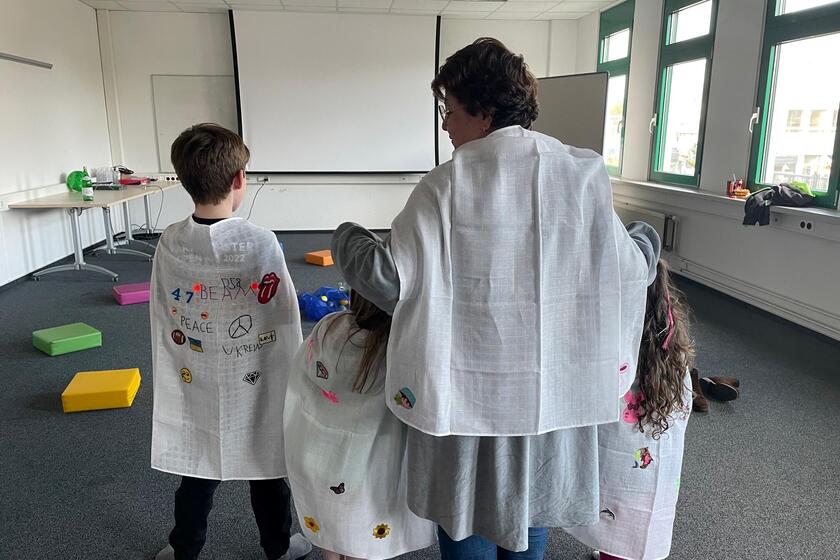 Manch einer ist super stark, wenn es um Gerechtigkeit geht, eine andere ist super stark, wenn es um das Erinnern und Wissen geht. Wieder andere sind besonders stark in sportlichen Sachen. Dazu haben die Kinder in der letzten Gruppenstunde ganz einzigartige und individuelle Superheldenumhänge gestaltet. Kaum ist dieser angelegt, werden sie zu Superheldinnen und -helden. Da der Umhang schön weich ist, können die Kinder ihn in traurigen Momenten oder auch einfach so zum Kuscheltuch, Stresstuch oder Schal umfunktionieren. So haben sie ihre Superkräfte immer dabei.