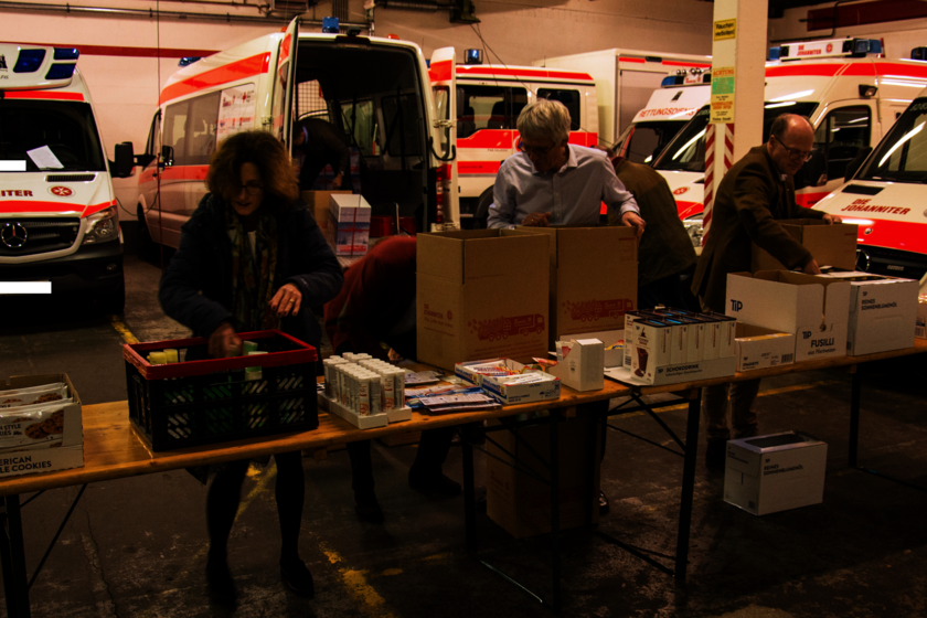 Der Inhalt von 22 Paketen wurde eingekauft und in einer gemeinsamen Aktion in der Rettungswache Osdorf des Ortsverbands nördliches Hamburg verpackt und verladen. Neben Dr. Klaus von Gierke und seiner Ehefrau war auch Hans-Christoph von Podewils, ehrenamtliches Mitglied im Hamburger Regionalvorstand, mit seiner Ehefrau vor Ort dabei, außerdem zahlreiche Hamburger Ritter sowie die Kommendatoren aus Hamburg und Mecklenburg - ein tolles Projekt und eine Hand-in-Hand-Aktion für die Johanniter-Unfall-Hilfe und die Hamburger Kommende.