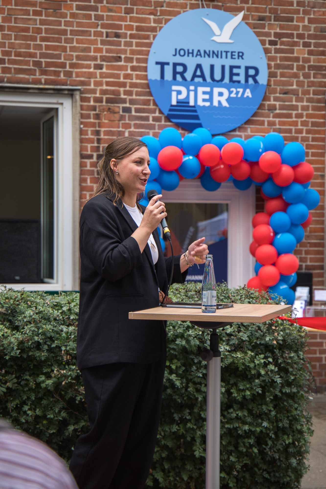 Auch die Botschafterin und Kinderbuchautorin Ayşe Bosse war bei der Eröffnung dabei. Sie sagt: „Es ist mir eine große Freude, Botschafterin und Unterstützerin eines so tollen Projektes zu sein. Der TrauerPier27A ist für mich der perfekte Raum für Trauer. Hier werden viele Familien gesehen und unterstützt auf ihrem Weg durch den Schmerz. Vor allem ist er aber ein Ort für Lebensfreude, Integrität und Heilung. Ich freue mich sehr auf die Zusammenarbeit.“