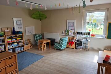 In unserer liebevoll eingerichteten Kita finden die Kinder zahlreiche Möglichkeiten sich zu beschäftigen. Hier können sie ihrer Kreativität freien Lauf lassen und unter anderem mit den gesammelten Naturmaterialien vom Spaziergang basteln. Auch unser Außengelände ist mit altersgerechten Spielgeräten ausgestattet. Die Kinder haben hier die Möglichkeit ihre motorischen Fähigkeiten zu fördern.
