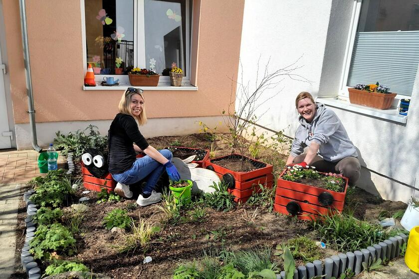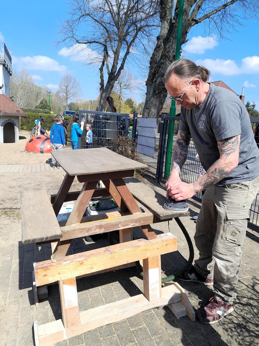 Ganz im Sinne unseres pädagogischen Konzepts wurde nicht lange gezögert, sondern direkt angepackt: Mit vereinten Kräften wurden Beete vorbereitet und neu gestaltet, Unkraut entfernt und der Sandkasten wieder aufgefüllt. Die Sitzbänke der Kinder erhielten einen frischen Schliff, während an vielen weiteren kleinen und großen Projekten gleichzeitig gearbeitet wurde. Überall war zu sehen und zu spüren, wie wichtig allen Beteiligten ein gepflegter, lebendiger und naturnaher Raum für die Kinder ist.