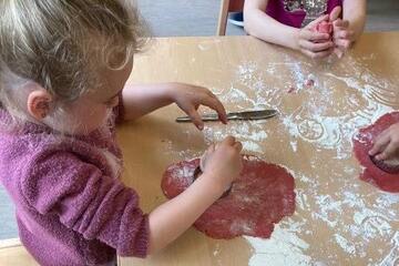 In unseren großzügigen Räumlichkeiten finden die Kinder zahlreiche Möglichkeiten sich zu beschäftigen. Hier können sie ihrer Kreativität freien Lauf lassen und unter anderem mit den gesammelten Naturmaterialien vom Spaziergang basteln.