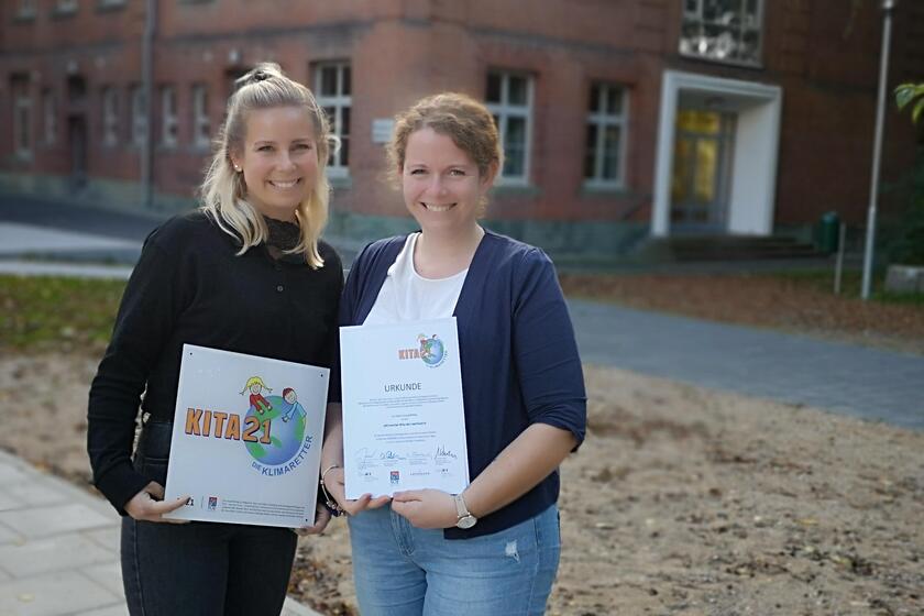 Gemeinsam haben Krützfeldt und Meyer die Auszeichnung bei der Preisverleihung am 29. September im Regionalen Berufsbildungszentrum in Kiel entgegengenommen. Bei der Veranstaltung dankte Familienminister Heiner Garg allen Beteiligten auch für ihren Einsatz während der Pandemie: „Unter den Bedingungen der Coronavirus-Pandemie solch herausragende Projekte im Bereich der Bildung für nachhaltige Entwicklung auf die Beine gestellt zu haben und zu verankern, ist wirklich eine beachtliche Leistung.“ Mit KITA21 werde ein wichtiger Beitrag zur Sensibilisierung für den Umwelt- und Klimaschutz geleistet.