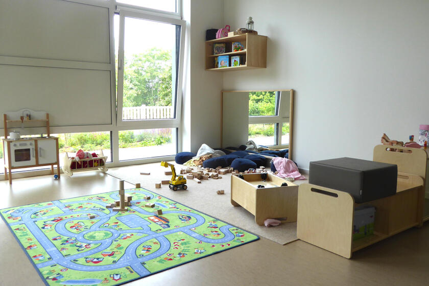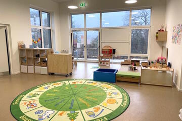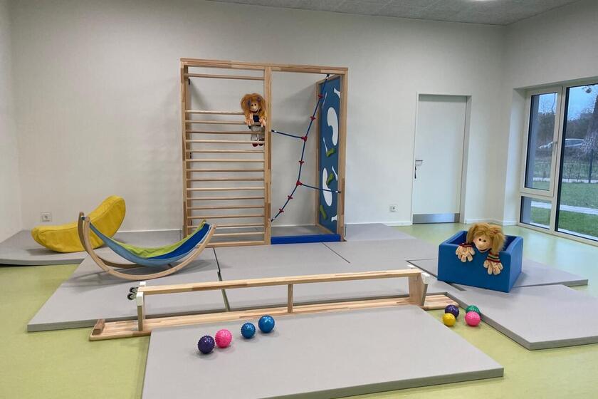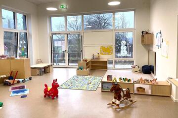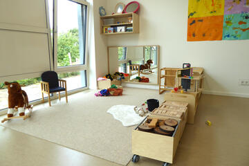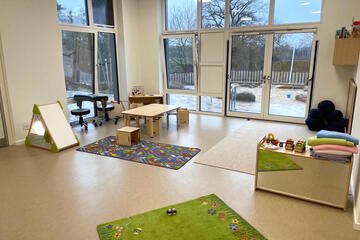 Unsere großzügigen Räumlichkeiten sind in einem im März 2020 fertiggestellten Neubau nach modernem Konzept eingerichtet worden. Das ebenerdige Gebäude verfügt über große, bodentiefe Fensterflächen und ist dadurch lichtdurchflutet und freundlich. Das gesamte Gebäude ist durchdacht geplant und die Räume sind großzügig geschnitten, sodass ausreichend Platz für die Kinder vorhanden ist. Es gibt verschiedene Räume; hierzu zählen Gruppenräume mit Nebenräumen, welche beispielsweise als Schlafraum genutzt werden. Zudem gibt es einen Bewegungsraum, einen Kreativraum und einen Speiseraum. Im „Krankenzimmer“ können Kinder, welche im Laufe des Tages erkranken, bis zum Eintreffen der Eltern betreut werden. Darüber hinaus gibt es einen Therapieraum, der durch externe Fachkräfte wie Logopäden oder Heilpädagogen sowie intern für Elterngespräche und Kleingruppenangebote genutzt wird.