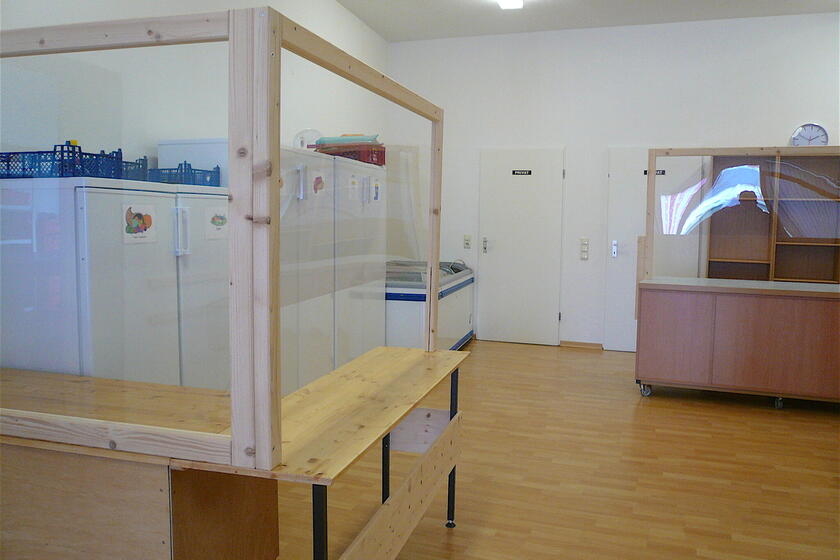 Für den zunehmenden Bedarf konnten wir das Problem der räumlichen Enge lösen: Anfang 2021 haben wir unsere Geschäftsräume durch den Auszug der Nachbarfirma flächenmäßig verdoppeln können. Die Räumlichkeiten haben wir überwiegend in Eigenleistung hergerichtet, zudem konnten wegen der Pandemie Plexiglaswände aufgebaut werden, die durch Spenden ermöglicht worden sind.