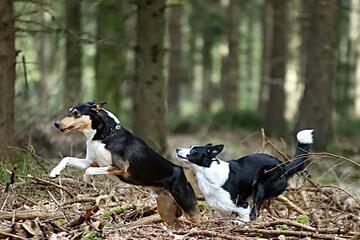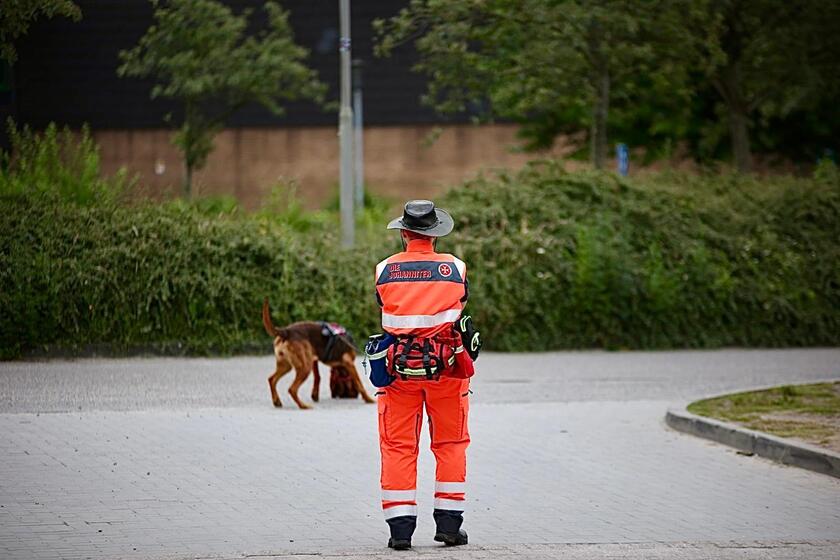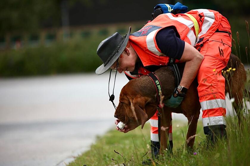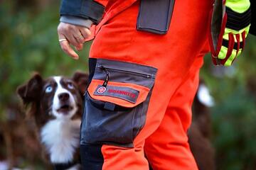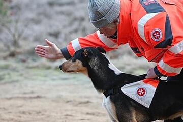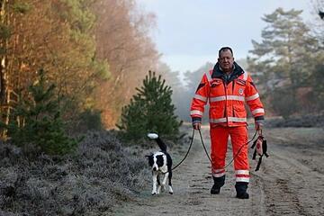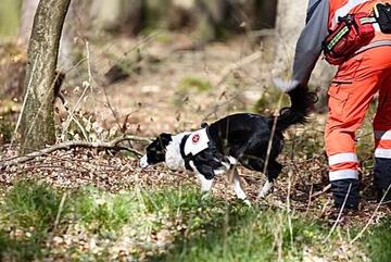 Unsere Flächen-Teams durchsuchen ein bestimmtes Gebiet konzentriert und systematisch. Die Hunde arbeiten dabei unter der Leitung des Hundeführers oder der Hundeführerin selbstständig und zeigen jeden Menschen an, den sie finden. Wenn die vermisste Person vom Hund gefunden worden ist, übernimmt der/die Hundeführer/in die medizinische Erstversorgung und fordert Verstärkung an. Bei einer Flächensuche kann ein Hund etwas 40 bis 50 Menschen ersetzen.