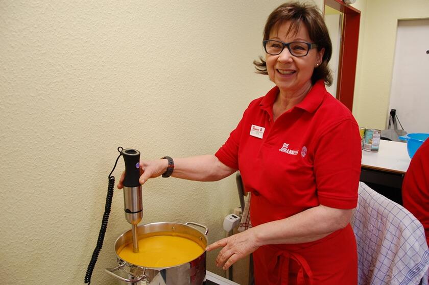 Carstens: "Die ersten aus dem Küchenteam starten schon um 8.30 Uhr mit dem Gemüse putzen und schnippeln. Denn wir kochen alles frisch – bei uns gibt es nichts Gefrorenes oder etwas aus der Dose. Obwohl das Essen erst um 12.30 Uhr beginnt, trudeln die ersten Gäste bereits um 11.15 Uhr ein. Bei manchen liegt das daran, dass sie auf den Bus angewiesen sind, der eben nicht anders fährt, andere freuen sich, weil sie sich dann schon mit den Tischnachbarn unterhalten können, manche kommen einfach mit der Uhrzeit durcheinander. Alles kein Problem - wir sind darauf eingestellt und heißen alle herzlich willkommen."