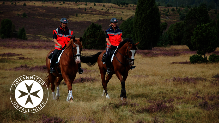 Rettungswagen auf vier Beinen: Unsere ehrenamtlichen Sanitätsreiterinnen und -reiter stehen auf Veranstaltungen im Notfall schnell zur Stelle, wenn Menschen Erste Hilfe benötigen. An den Sommerwochenenden sind sie in der Lüneburger Heide unterwegs und versorgen Touristen und Wanderer im Ernstfall.