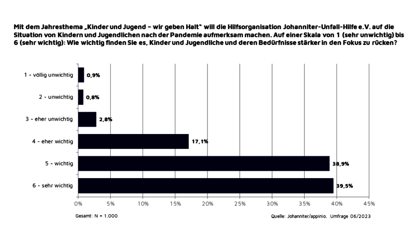 Niemand weiß besser, was Kindern in der Zeit der Pandemie verloren gegangen ist, als ihre Eltern. Um ein Bild davon zu bekommen, haben die Johanniter im Norden eine Umfrage unter Eltern mit minderjährigen Kindern gemacht. 1.000 Personen zwischen 22 und 65 Jahren haben sich an der Online-Befragung des Anbieters Appinio im Juni 2023 beteiligt und einen Einblick in die Gefühlslage ihres Nachwuchses gegeben.