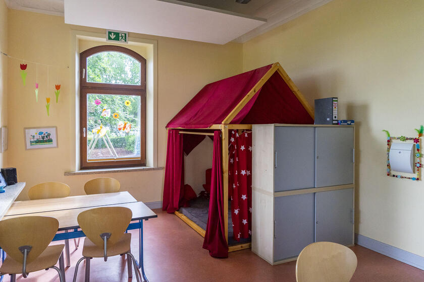 Nebenan befindet sich die Kindertagesstätte Fuchsbau. Das Johanniter-Team arbeitet übergreifend in beiden Einrichtungen. Wir sind überzeugt davon, dass Bildung mehr ist als Wissen, denn im Mittelpunkt der kindlichen Entwicklung stehen Neugier, kreativer Umgang mit Herausforderungen, Freude am Lernen und Kontakt mit der Umwelt. Dafür schaffen wir Geborgenheit und Sicherheit durch verlässliche und beständige Bezugspersonen und bieten immer neue Anregungen und Herausforderungen. Kinder erleben eine ganzheitliche Pädagogik, die stark macht, durch entwicklungsgerechte Bildungsangebote, Bewegungsspielräume, spielerische Sprachentwicklung und vielfältige Werk- und Gestaltungsmöglichkeiten.