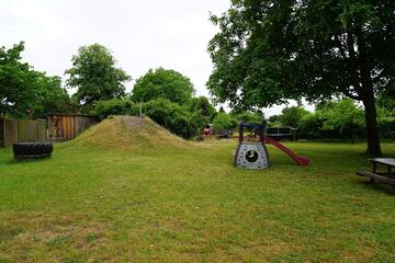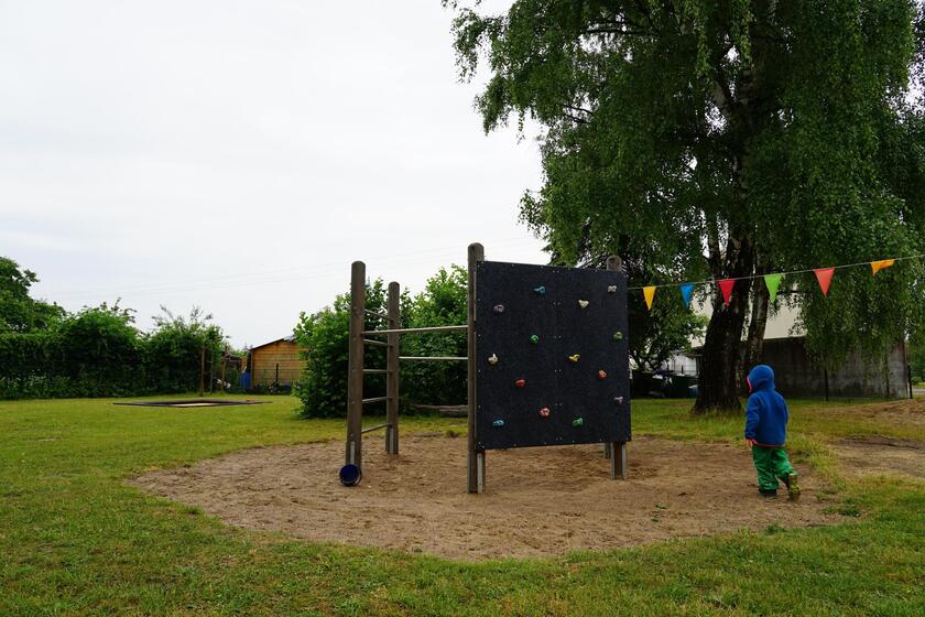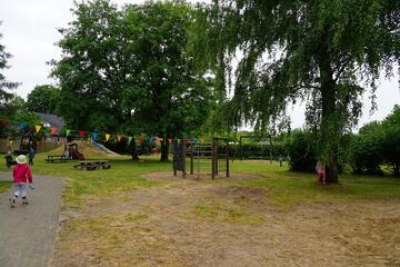 Auch unser Außengelände ist mit altersgerechten Spielgeräten ausgestattet. Hier haben die Kinder die Möglichkeit, ihre motorischen Fähigkeiten unter anderem am Klettergerüst zu fördern. Ein weiteres Highlight sind unsere kleinen Hochbeete. Die kleinen Entdecker pflanzen hier gemeinsam Wildblumen und Erdbeeren, die sie beim Wachsen beobachten und nach einiger Zeit sogar ernten können.