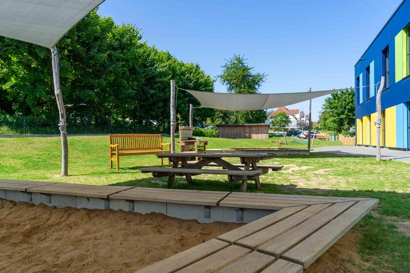 - Großes, neu angelegtes Außengelände mit Wasserspielanlage, Kletteranlage für Kinder ab drei Jahren, Sandkisten, unterschiedliche Schaukeln, Bobbycar-Bahn u.v.m.