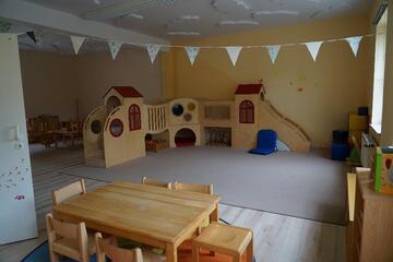 Unsere großzügigen Räumlichkeiten bieten den Kindern zahlreiche Möglichkeiten der Beschäftigung. Ob in dem Sportraum oder den Kreativräumen - es gibt immer etwas Neues zu entdecken.