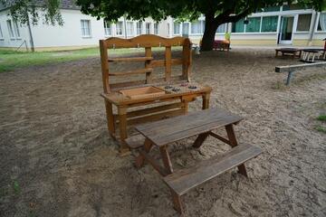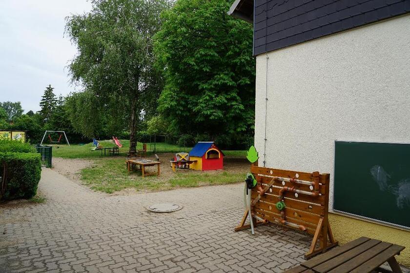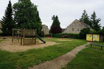 Auch unser Außenbereich bietet eine Vielzahl von altersgerechten Spielgeräten. Neben Matschküche und Rutsche können die Kinder ihre motorischen Fähigkeiten am Klettergerüst weiter ausbauen. Für die kleinen Naturforscher gibt es ebenfalls im Außengelände viel zu entdecken - ob kleine Käfer im Insektenhotel oder Vögel in ihren Nestern.