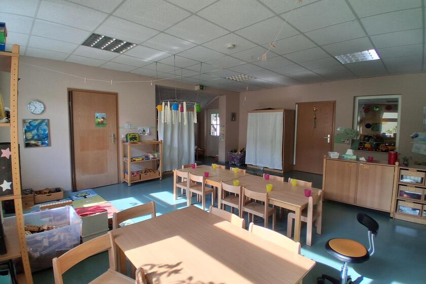 In unseren großzügigen Räumlichkeiten finden die Kinder zahlreiche Möglichkeiten sich zu beschäftigen. Hier können sie ihrer Kreativität freien Lauf lassen und unter anderem mit den gesammelten Naturmaterialien vom Spaziergang basteln.