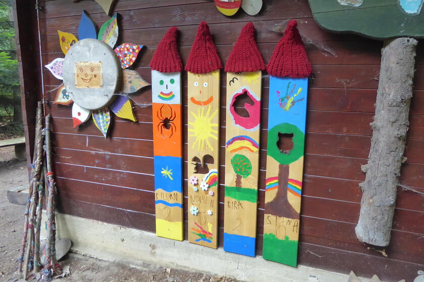 Unsere Wurzelzwerge aus der Waldgruppe erleben die Natur mit allen Sinnen im Freien. Wir halten uns im Wald auf und haben zum Schutz eine eigene Waldhütte.