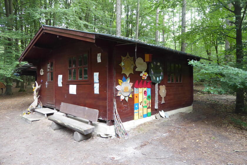 Seit langer Zeit, genauer gesagt mit Start im September 2001, halten wir uns mit „unseren“ Kindern täglich nach dem Konzept der Waldpädagogik im Wald auf. Unsere Wurzelzwerge sind bei jedem Wetter draußen, aber es steht uns eine eigene Schutzhütte von 25 Quadratmetern Fläche zur Verfügung.