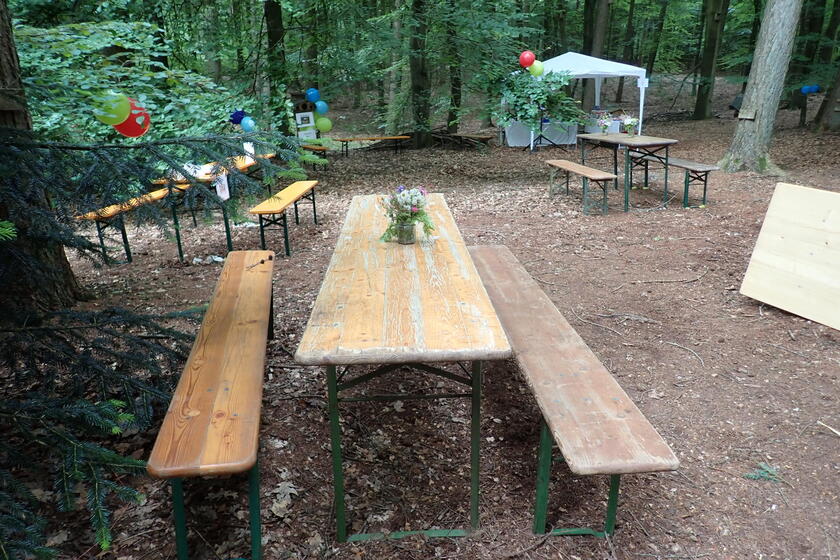 Mit ihrer Waldkita haben sich die Johanniter an der St. Michel-Woche beteiligt und ein großes, offenes Sommerfest im Forst Christianslust bei ihrer Waldhütte gefeiert.