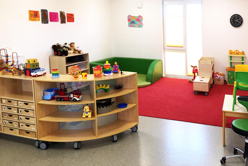 Die Kinderbetreuung in der Gemeinschaftsunterkunft in Lübeck-Travemünde bietet Platz für bis zu 20 Kinder in je einer kleinen und mittleren Gruppe im Alter unter und über drei Jahren.