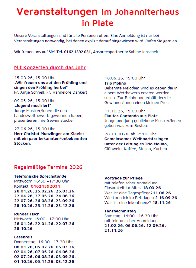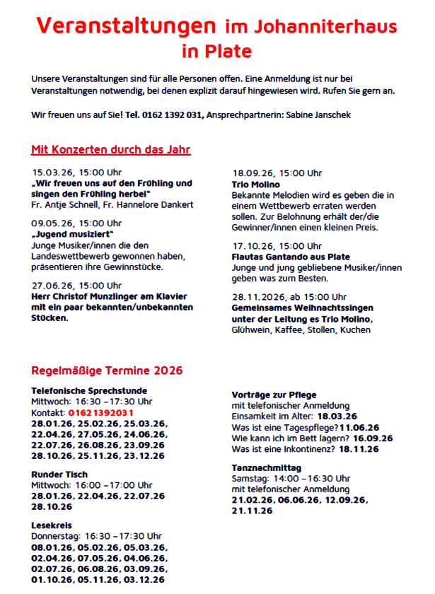 Auf diese und weitere Fragen rund um das Thema „Pflege“ geben wir Ihnen fachkundige Auskünfte. In Plate findet jeden vierten Mittwoch im Monat von 16:30 bis 17:30 Uhr eine individuelle Pflegeberatung statt – telefonisch oder nach vorheriger Absprache auch in Präsenz.