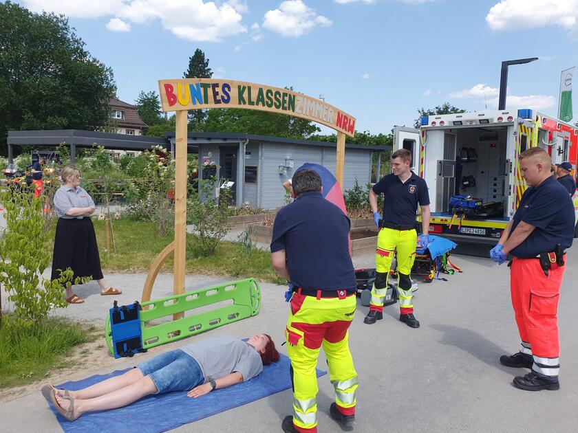Wir Johanniter Lippe-Höxter danken allen Interessierten, die uns im "Bunten Klassenzimmer" auf der Blaulichtmeile einen Besuch abgestattet haben für die anregenden und informativen Gespräche. Unsere Ehrenamtlichen von der Motorradstaffel, unser Team Rettungsdienst und die Kolleginnen der neuen Kita "Bielenbergbande" in Höxter hatten ein buntes Programm gestaltet. Gemeinsam informierten wir unsere Besucherinnen und Besucher über die vielfältigen Einsatzmöglichkeiten im Haupt- und Ehrenamt sowie über unsere frisch eröffnete Kita "Bielenbergbande". Die kleinen Gäste konnten währenddessen unsere Einsatzkräder erkunden und Probe sitzen oder bei der Kita-Bastel-Aktion unter dem Motto „Blaulicht“ kreativ werden. Als Highlight folgte abschließend eine Vorführung des Rettungsdienstes - von Erste-Hilfe und Anlegen eines Stiff Neck über Reanimation bis zum richtigen Transport bei Wirbelsäulenverletzungen.
