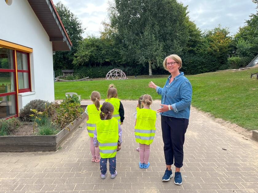 „Die Westen sind eine wunderbare Unterstützung für unsere Verkehrserziehung und unsere Ausflüge in die Umgebung. So sind unsere Schützlinge im Straßenverkehr immer gut sichtbar – und sicher unterwegs. Den ersten Praxistest haben Kinder und Westen schon mit Bravour bestanden“, freut sich Sabine Lohmeier und bedankt sich herzlich im Namen der Kinder für das Engagement des Vereins.